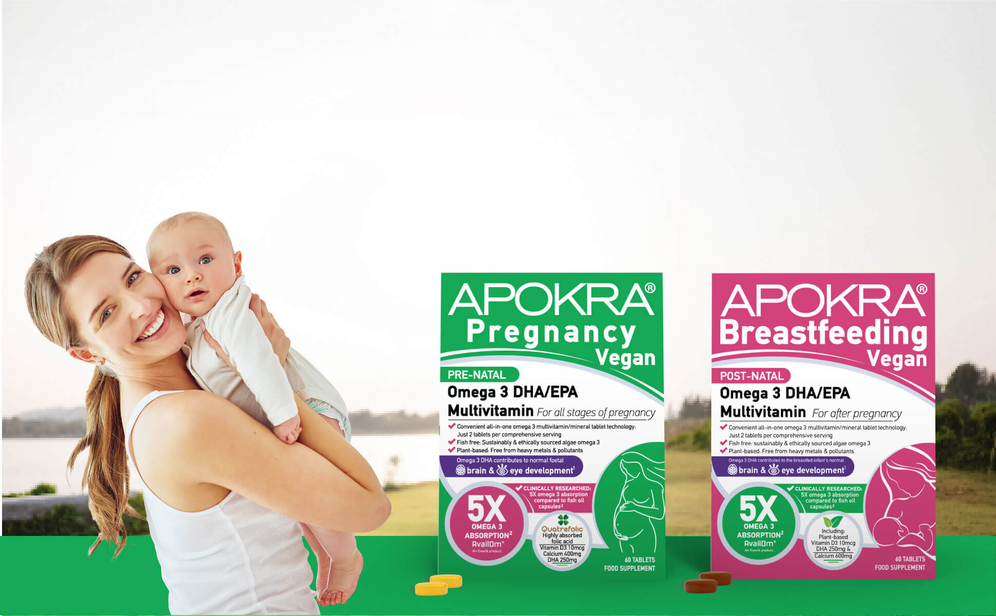 Apokra's pre and postnatal tablets offer a convenient and effective solution for mothers at every stage of their pregnancy and during breastfeeding, providing superior absorption, complete nutrition in just two tablets, and a commitment to ethical sourcing –without the typical fishy taste of traditional fish oil tablets.